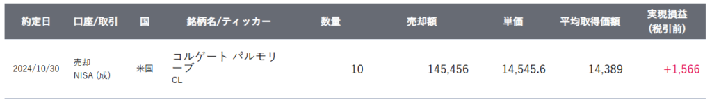 2024年10月は1件の株式を売却しました。銘柄別の損益です。