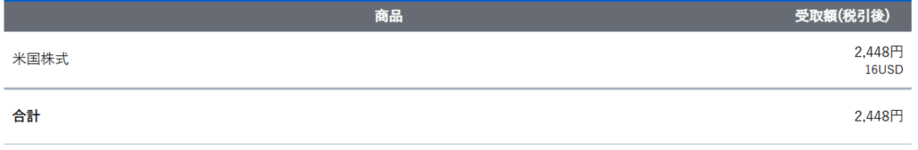 全14回の合計配当額 237.40ドル・31,777円 累計配当額が3万円を超えました。