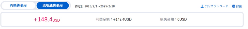 - 個別銘柄の売却損益(ドル換算) +148.40ドル