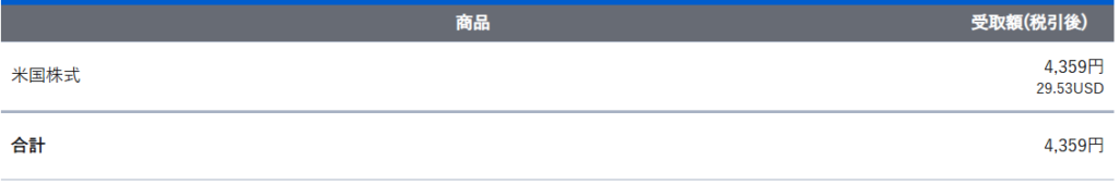- 配当金額 29.53ドル・4,359円