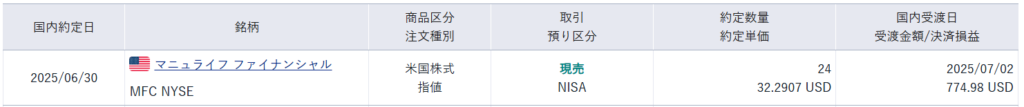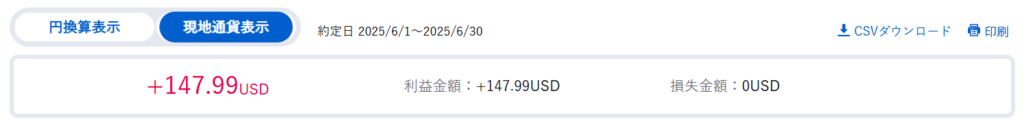• 個別銘柄の売却損益 (ドル換算)   32.90+31.50+83.59=147.99ドル