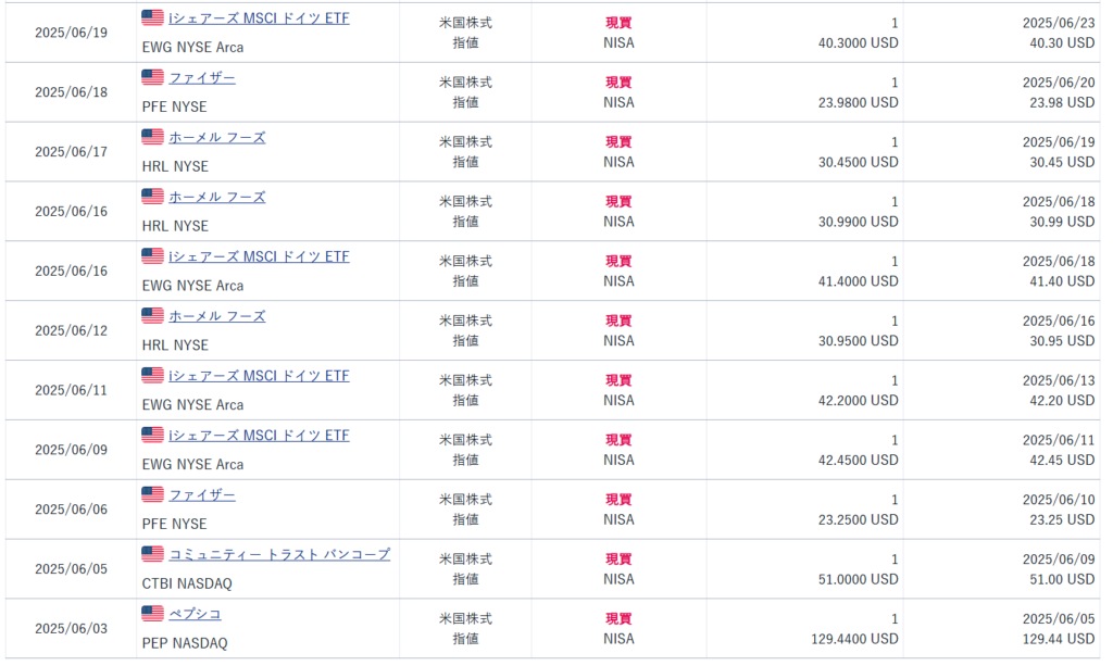購入については、今月も王道の銘柄もそうですが、新たな試みとして、ホーメル フーズ(HRL)コミュニティー トラスト バンコープ(CTBI)などが見受けられますね。ホーメル フーズ(HRL)は下げてますが、コミュニティー トラスト バンコープ(CTBI)は(2026年2月現在)上げてますね。どちらも今後、再び買う可能性があると見てます。