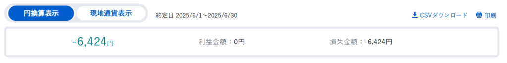 • 売却損益の総額 (円換算)      -6,424円