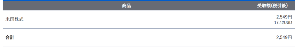 - 配当金額 17.42ドル・2,549円