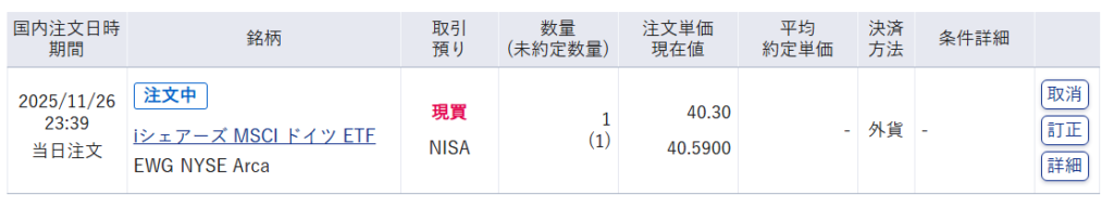 上記については、以前から保有しておりましたが、アメリカ株への投資が難しい状況となっておりますので、今後は国際分散投資を進めていこうと夫婦で検討しております。昨日は指値が低くて約定しませんでしたが、買い増ししていくつもりです。