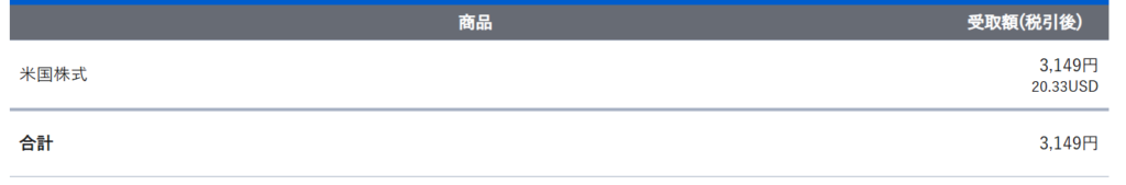 12月の受け取り総額は 20.33ドル3,149円 でした