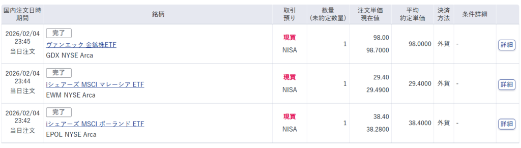 ③iシェアーズ MSCI ポーランド ETF(EPOL)・・・こちらも以前購入していた銘柄の買い増しです。この銘柄も分散投資の分散先のひとつとして考えてます。ただ、やはりこちらも、この先調整されることが考えられますので、少しずつし様子を見ながら購入していこうと考えてます。