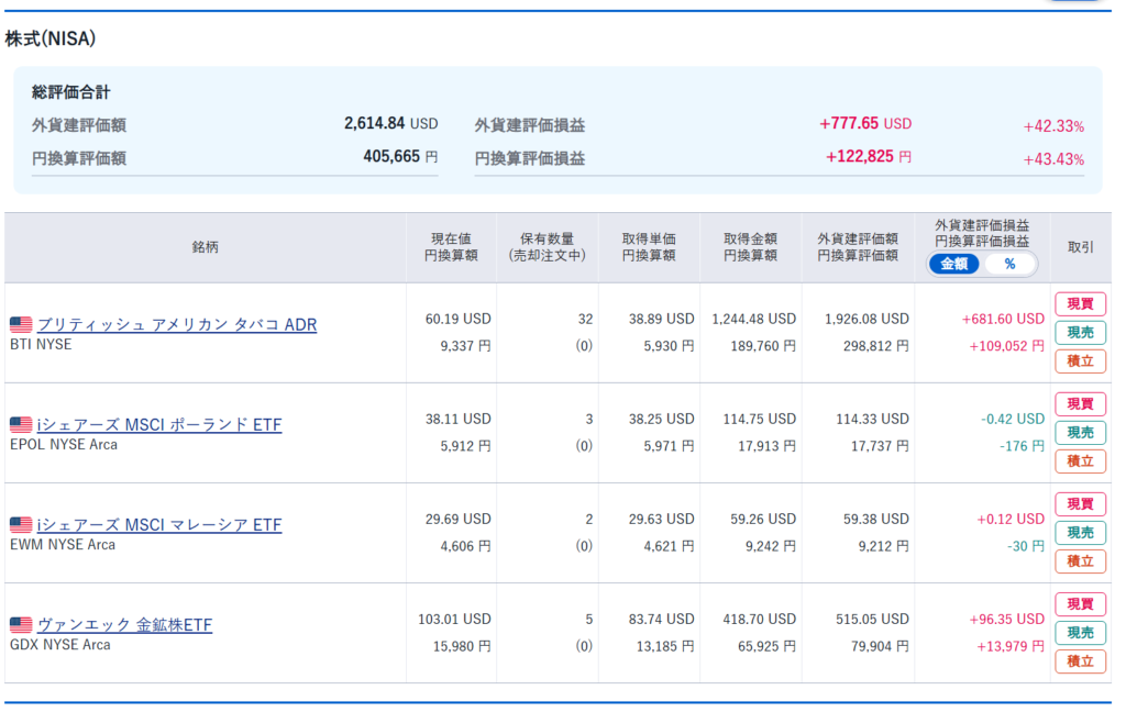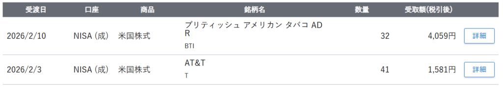 ブリティッシュ アメリカン タバコ ADR(BTI)様から配当をいただきました。ブリティッシュ アメリカン タバコ ADR(BTI)の皆様、たくさんの配当をいただきありがとうございました。