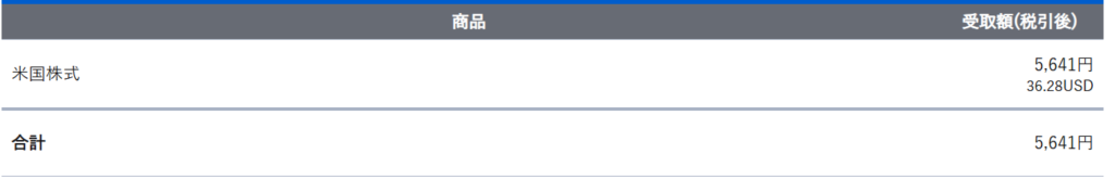 2月の受け取り総額は 36.28ドル・5,641円 です。
