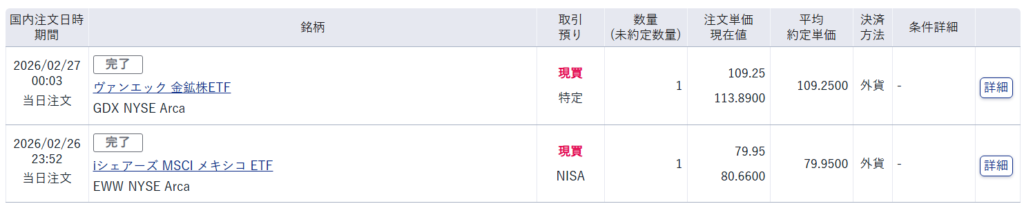 ②iシェアーズ MSCI メキシコETF(EWW)・・・こちらの銘柄は、昨日も注文して約定しませんでしたが、本日は上手く約定しました。昨日も書かせていただきましたが、分散投資をしていくにあたって有益な投資先のひとつと考えておりますので、これからも買い増しをしていく予定です。