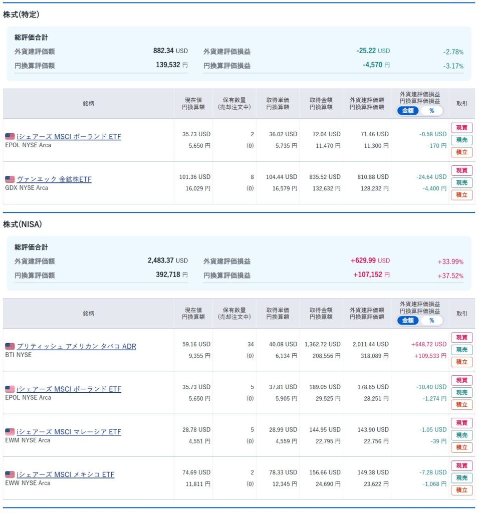 ※ iシェアーズ MSCI ポーランドETF(EPOL) は間違えて特定口座で購入してしまいましたが、皆様はこのような失敗をしないように注文の際にはよく確認してしてください。