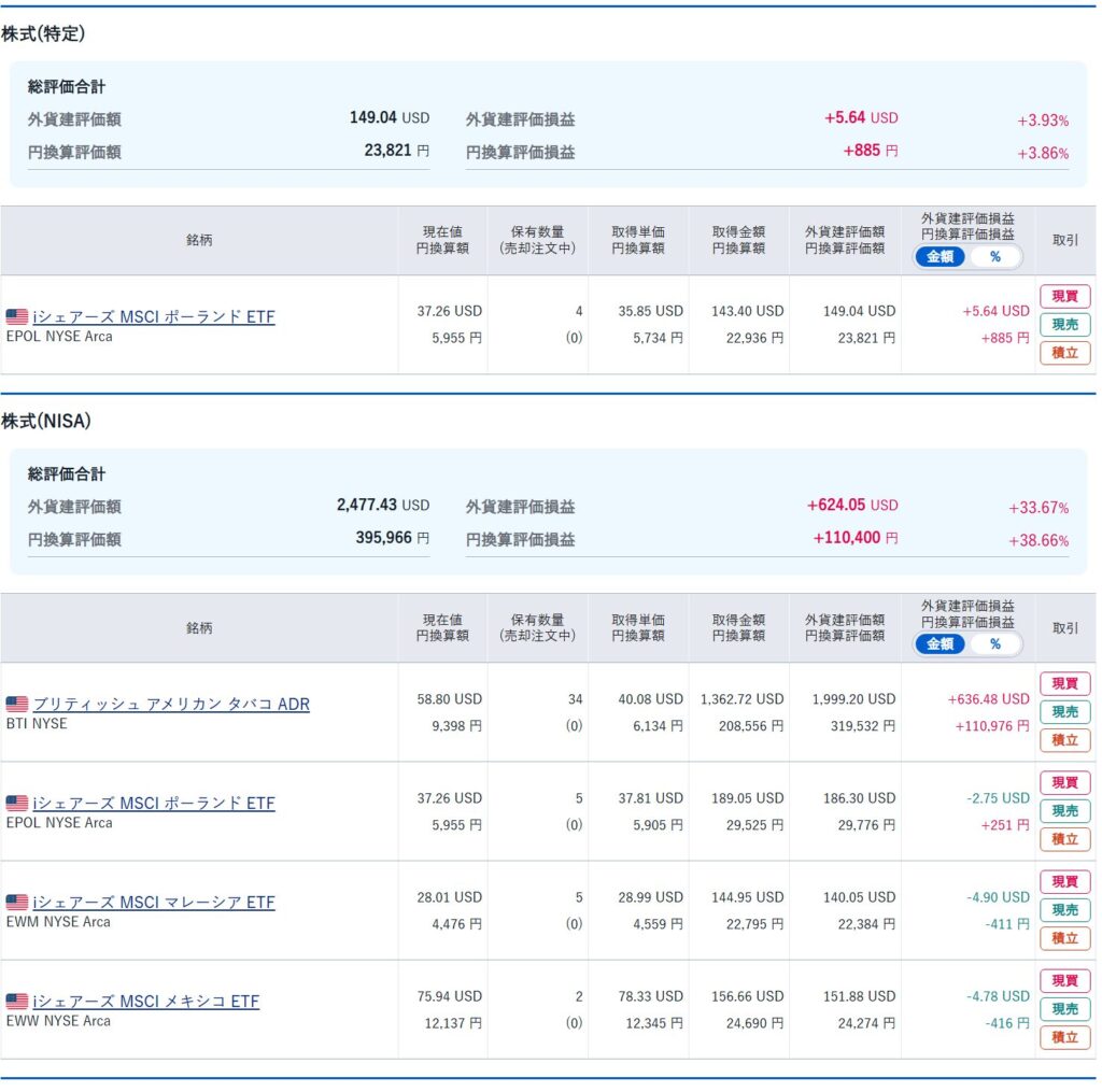 ※ iシェアーズ MSCI ポーランドETF(EPOL) は間違えて特定口座で購入してしまいましたが、皆様はこのような失敗をしないように注文の際にはよく確認してしてください。
