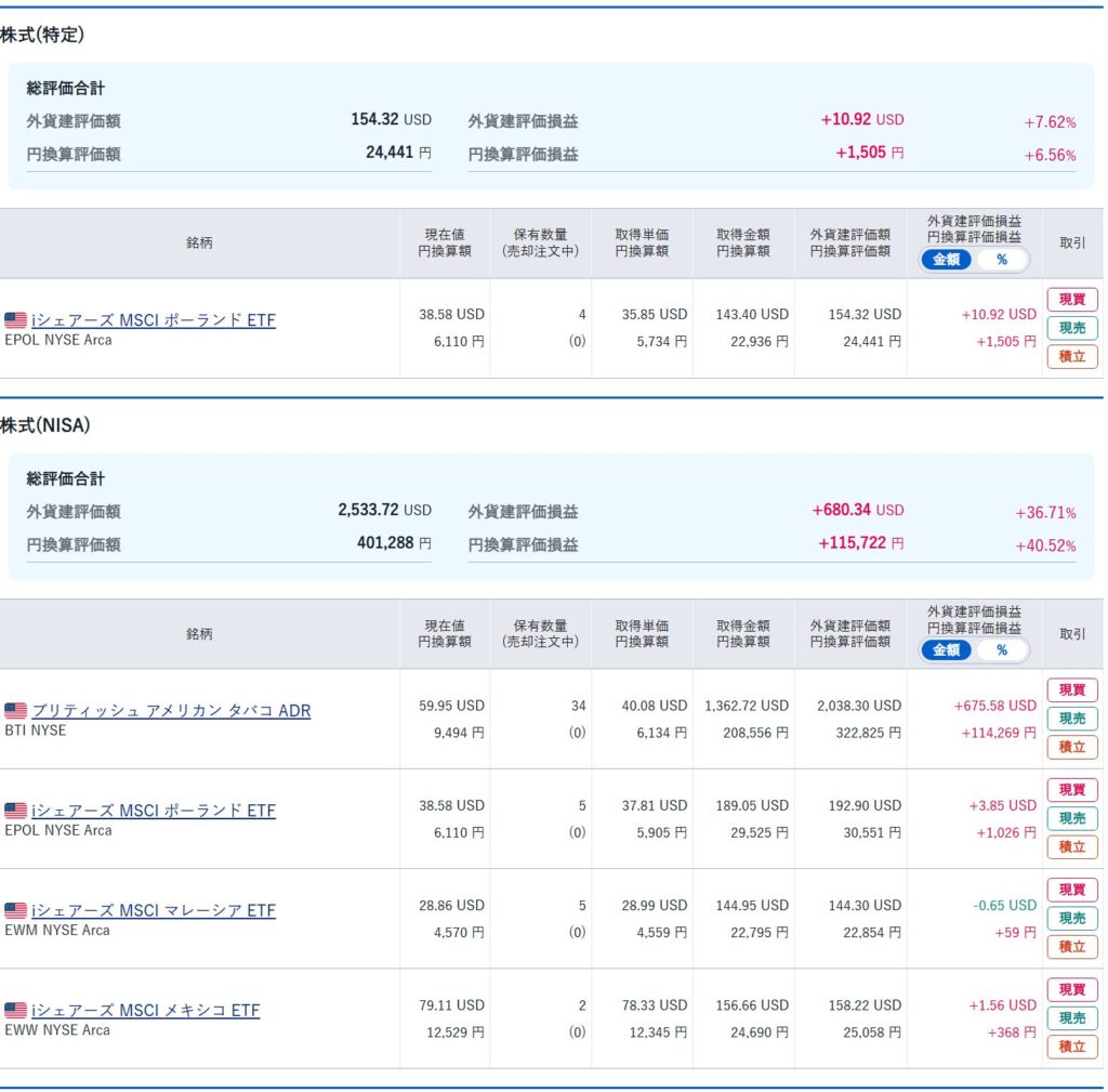 ※ iシェアーズ MSCI ポーランドETF(EPOL) は間違えて特定口座で購入してしまいましたが、皆様はこのような失敗をしないように注文の際にはよく確認してしてください。