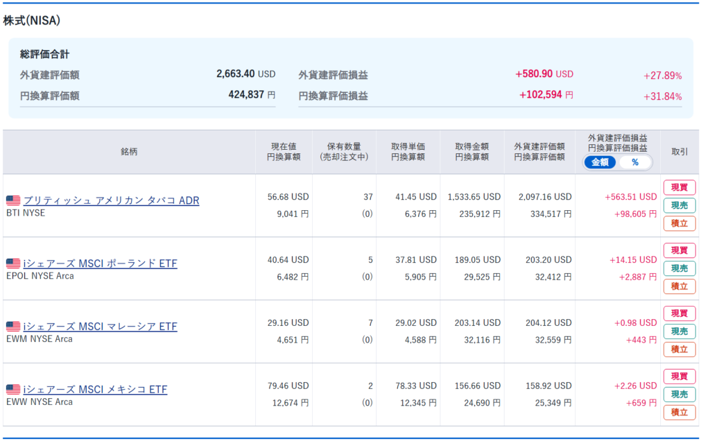 NISA口座  ドルでは+26.67 ドルです。円では+6,020 円です。