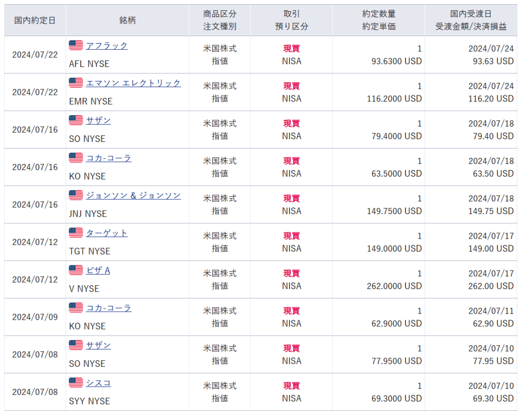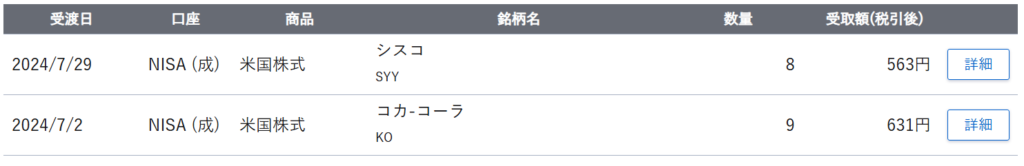 米国株は年4回の配当を実施している銘柄が多いので、投資から配当までが日本株よりも早いですね。