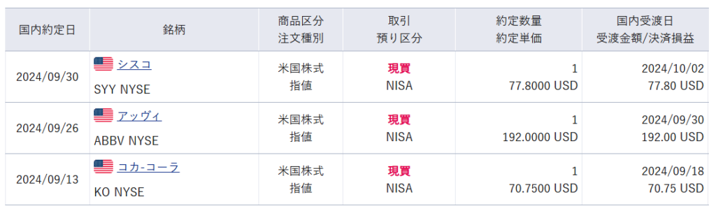 米国株は年4回の配当を実施している銘柄が多いので、投資から配当までが日本株よりも早いですね。