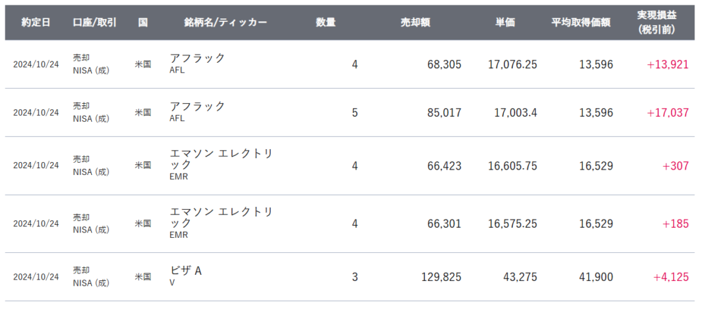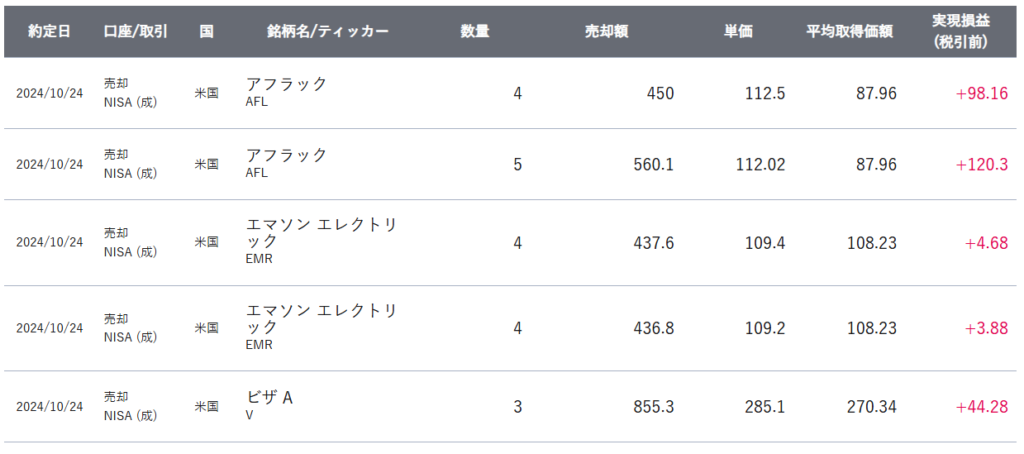 ①アフラック(AFL)については利回りがあまり高くないので、利益があるうちに売却しました。