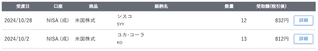 米国株は年4回の配当を実施している銘柄が多いので、投資から配当までが日本株よりも早いですね。