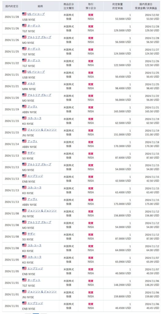 米国株は年4回の配当を実施している銘柄が多いので、投資から配当までが日本株よりも早いですね。