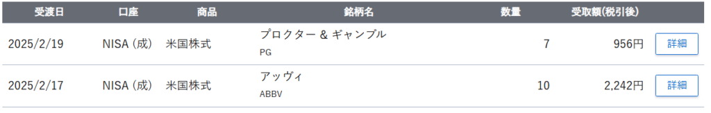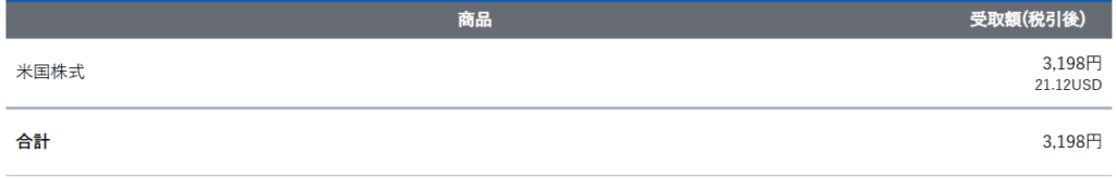 2025年2月の配当額は   21.12ドル3,198円