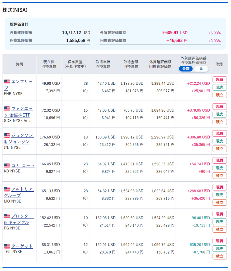 ゆきち妻のポートフォリオは、ドルでは-11.68ドルとなりました。円では+8,124円となりました。