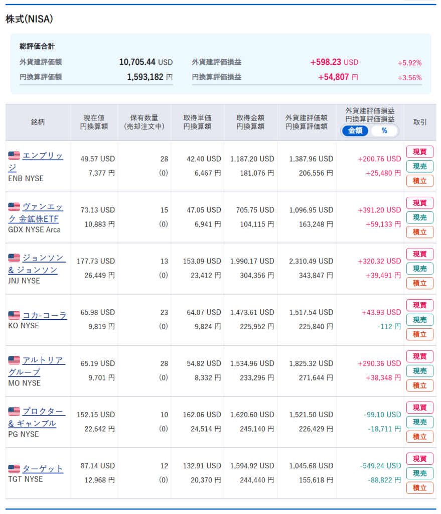 ゆきち妻のポートフォリオは、ドルでは+69.00ドルとなりました。円では+19,533円となりました。