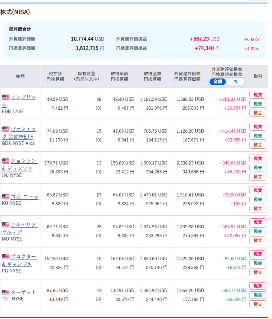 ゆきち妻のポートフォリオは、ドルでは+73.52ドルとなりました。円では+3,409円となりました。