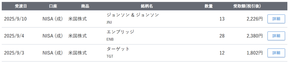 - 9月の受取配当総額