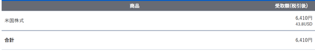 9月の受け取り総額は 43.80ドル・6,410円 でした。