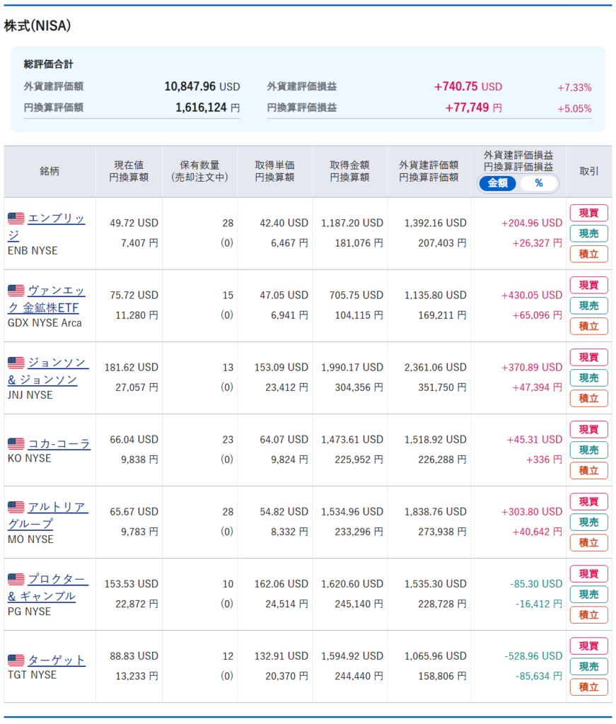 ゆきち妻のポートフォリオは、ドルでは+109.32ドルとなりました。円では+8,948円となりました。