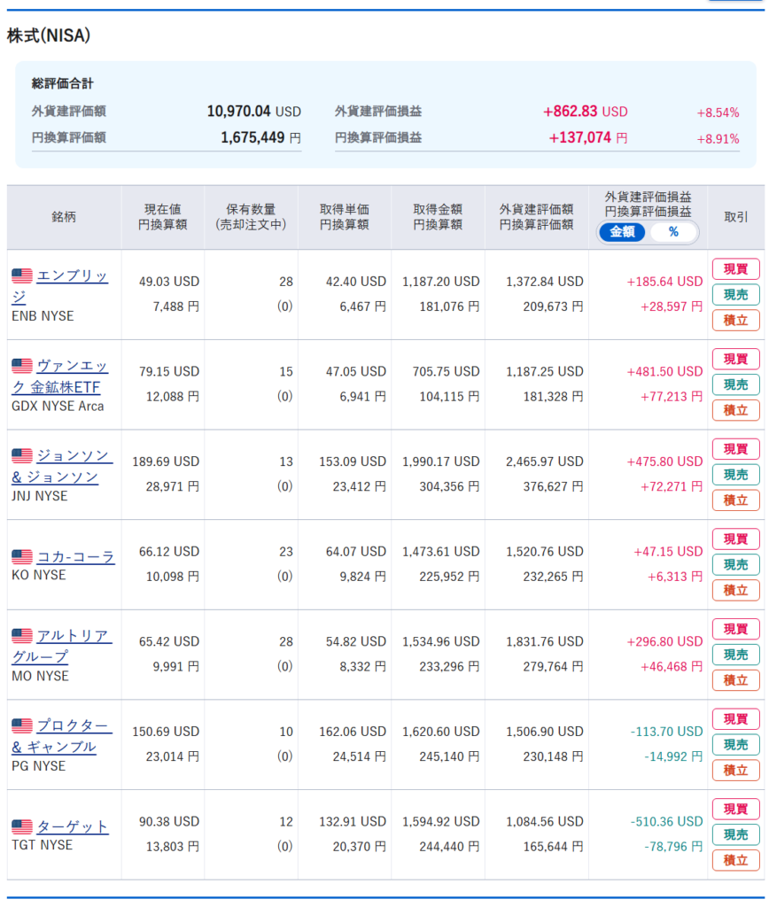 ゆきち妻のポートフォリオは、ドルでは-66.46ドルとなりました。円では-7,532円となりました。
