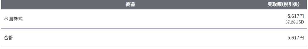 10月の受け取り総額は 37.28ドル5,617円 でした。