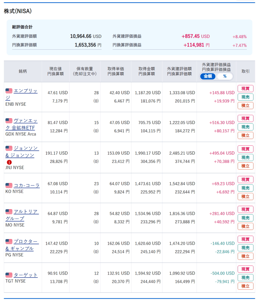 ゆきち妻のポートフォリオは、ドルでは+52.07ドルとなりました。円では+12,481円となりました。