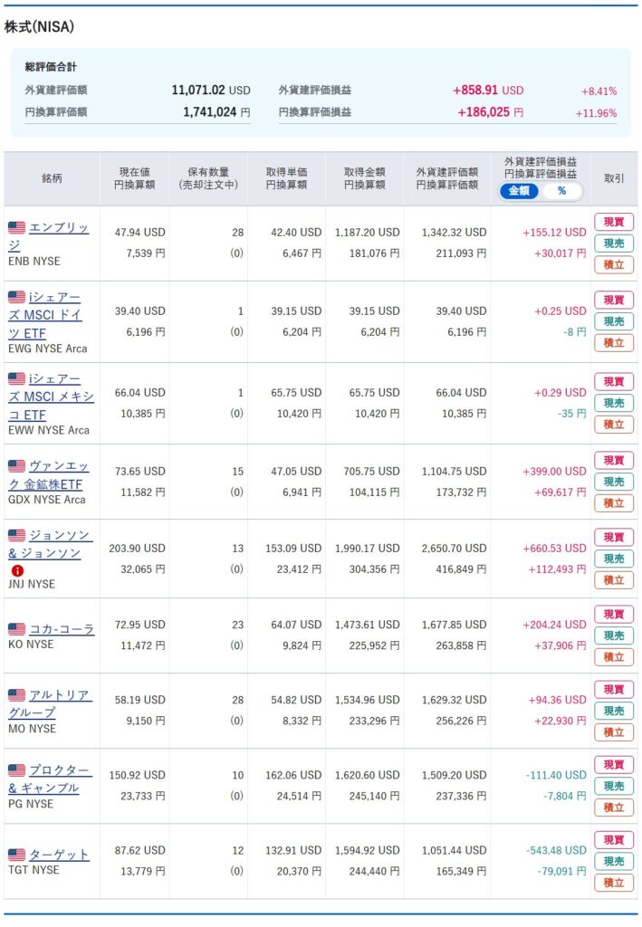 iシェアーズ MSCI メキシコ ETF(EWW)・・・こちらの銘柄につきましても、上記同様にアメリカ株以外への分散投資の一環として購入致しました。今後は買い増しを検討しております。