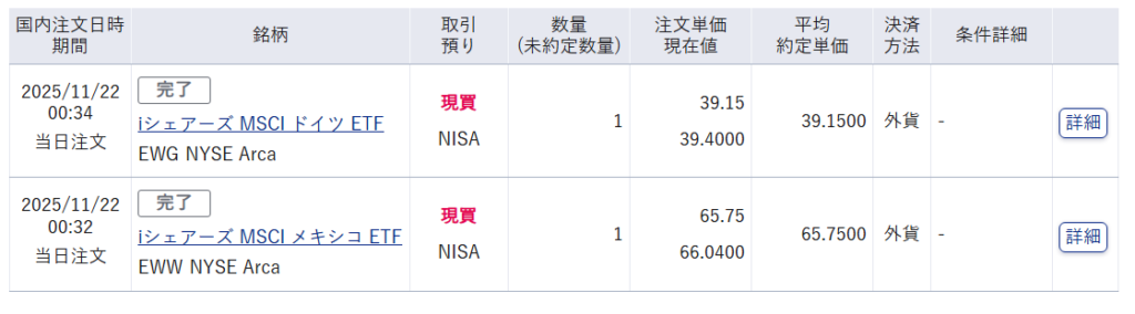 iシェアーズ MSCI ドイツ ETF(EWG)・・・こちらの銘柄につきましては、既にゆきち夫が購入しておりますが、アメリカ株以外への投資の一環として、今後はしばらく国際分散投資をしていこうと夫婦で検討しておりましたので、その一環として購入しました。