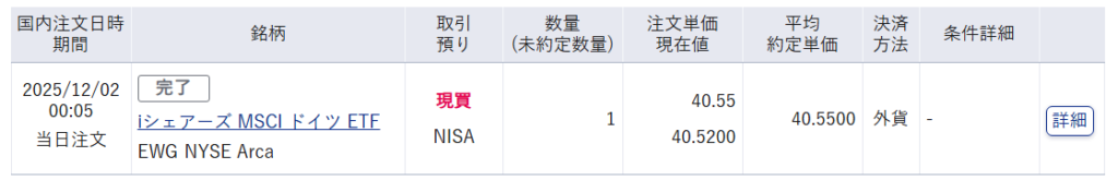 ①iシェアーズ MSCI ドイツETF(EWG)・・・この銘柄は分散投資の一つとして最近買い始めた銘柄です。今後も買い増しを続けていくつもりですが、あくまでも長期目線での買いなので短期的に儲けることは難しい銘柄です。