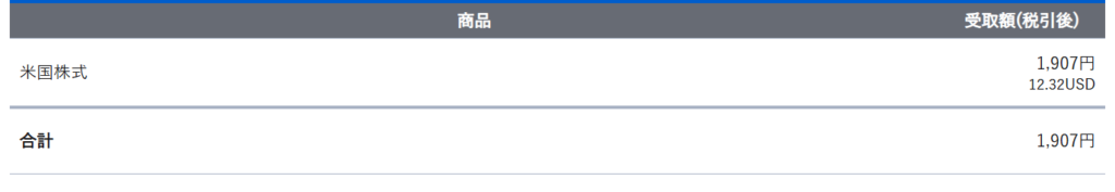 12月の受け取り総額は 12.32ドル・1,907円 でした。