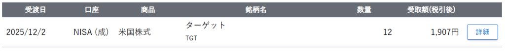 ターゲット(TGT)様から配当をいただきました。ターゲット(TGT)の皆様、配当していただき誠にありがとうございました。