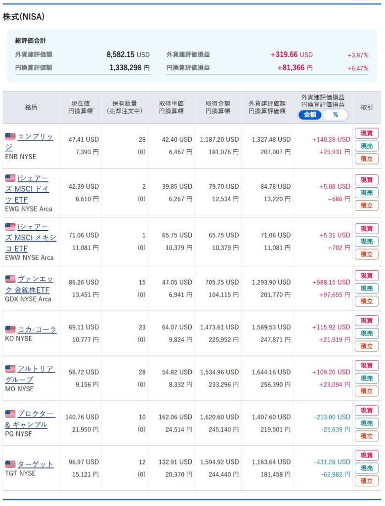 ゆきち妻の資産は、ドルでは+66.32ドルとなりました。円では+3,957円となりました。