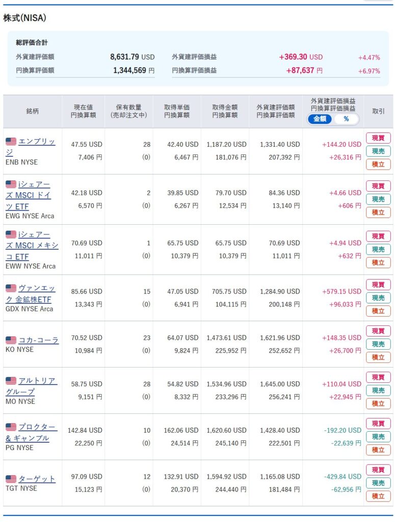 ゆきち妻の資産は、ドルでは+49.64ドルとなりました。円では+6,271円となりました。