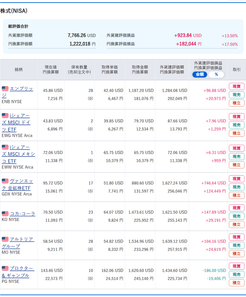 ①エンブリッジ(ENB)・・・こちらの銘柄は配当も高く、株価も手ごろということもありかなり買い増しをしてました。この株式が悪くて売却したわけではなく、これかやってくる米国株の下落に備えて利益があるうちに売却しました。