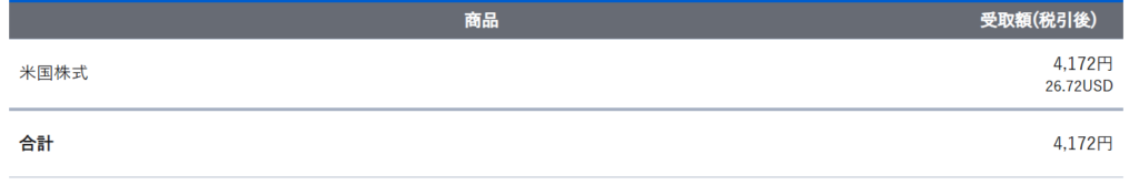 1月の受け取り総額は 26.72ドル・4,172円 でした。