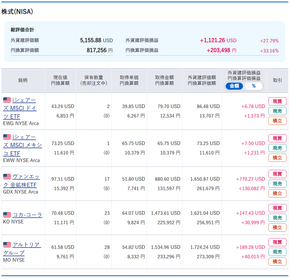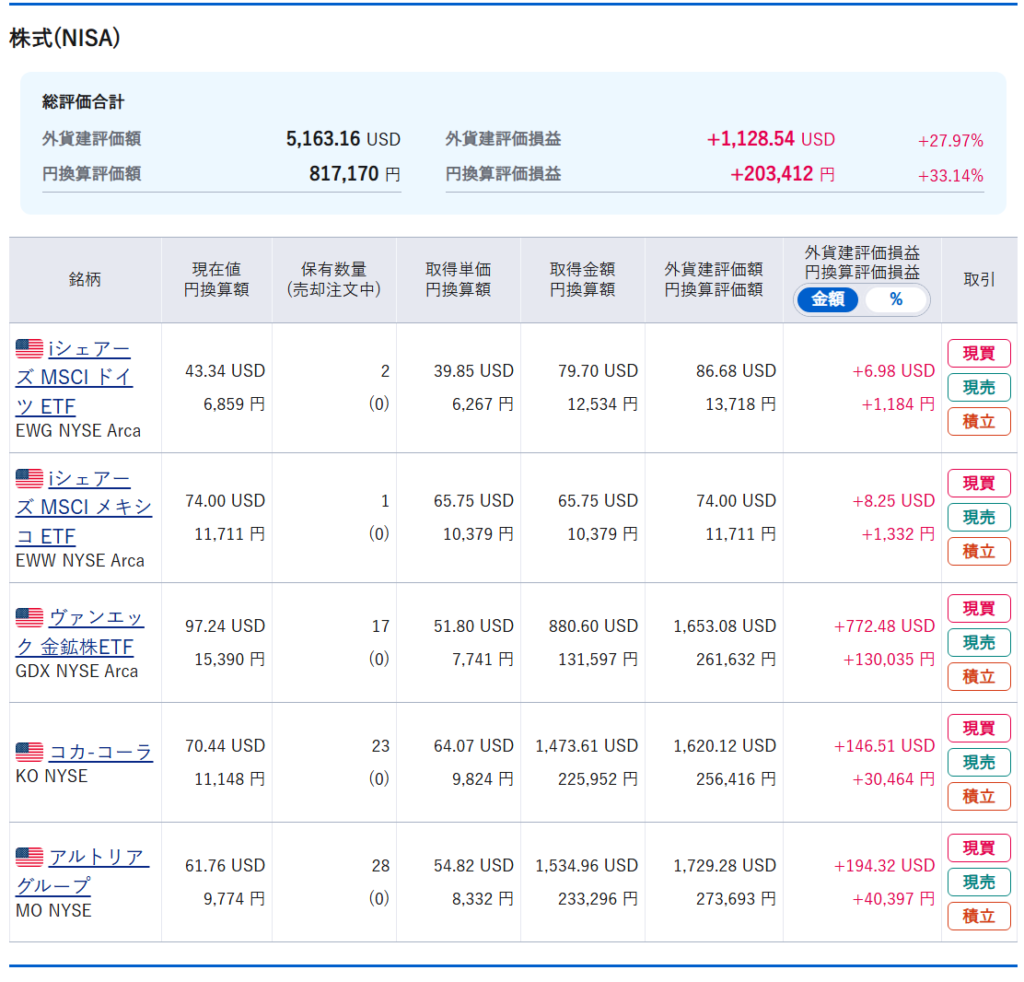 ゆきち妻の資産は、ドルでは+7.80ドルとなりました。円では-86円となりました。