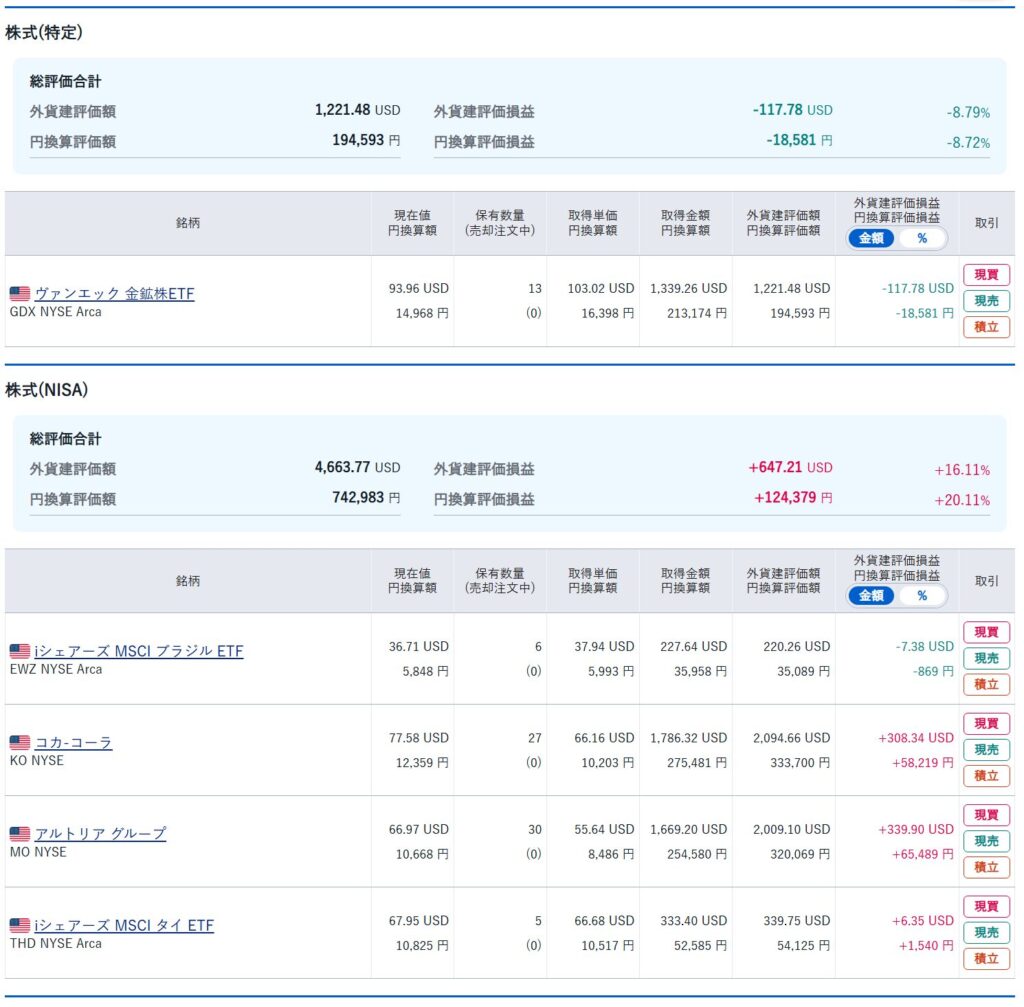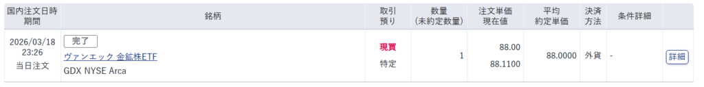 ①ヴァンエック 金鉱株ETF(GDX)・・・特定口座での金の買い増しです。昨日は再び大きく下げて取引を終えましたね。今後はこうした厳しい展開が予想されますので、やはり今は買い時ではないですね。この手法を継続していくのかも含めて再検討が必要ですね。