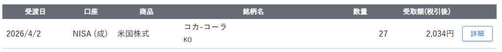 コカ・コーラ様から配当をいただきました。コカ・コーラの皆様配当していただきありがとうございました。