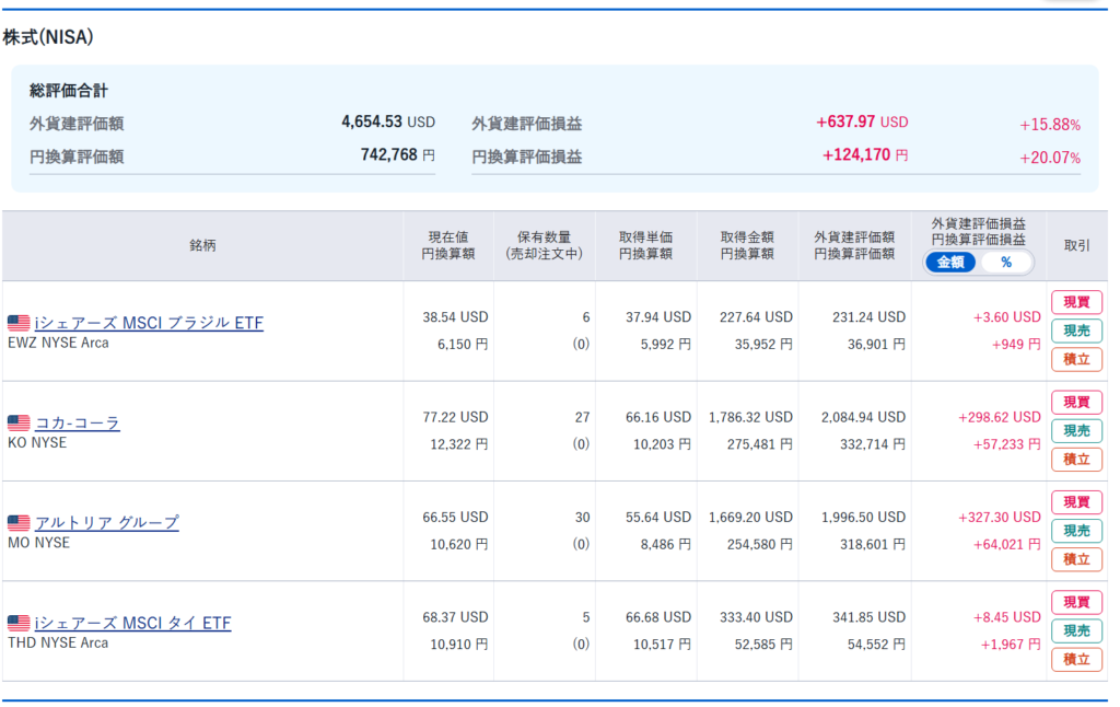 NISA口座 ドルでは+37.94ドルとなりました。円では+5,731円となりました。